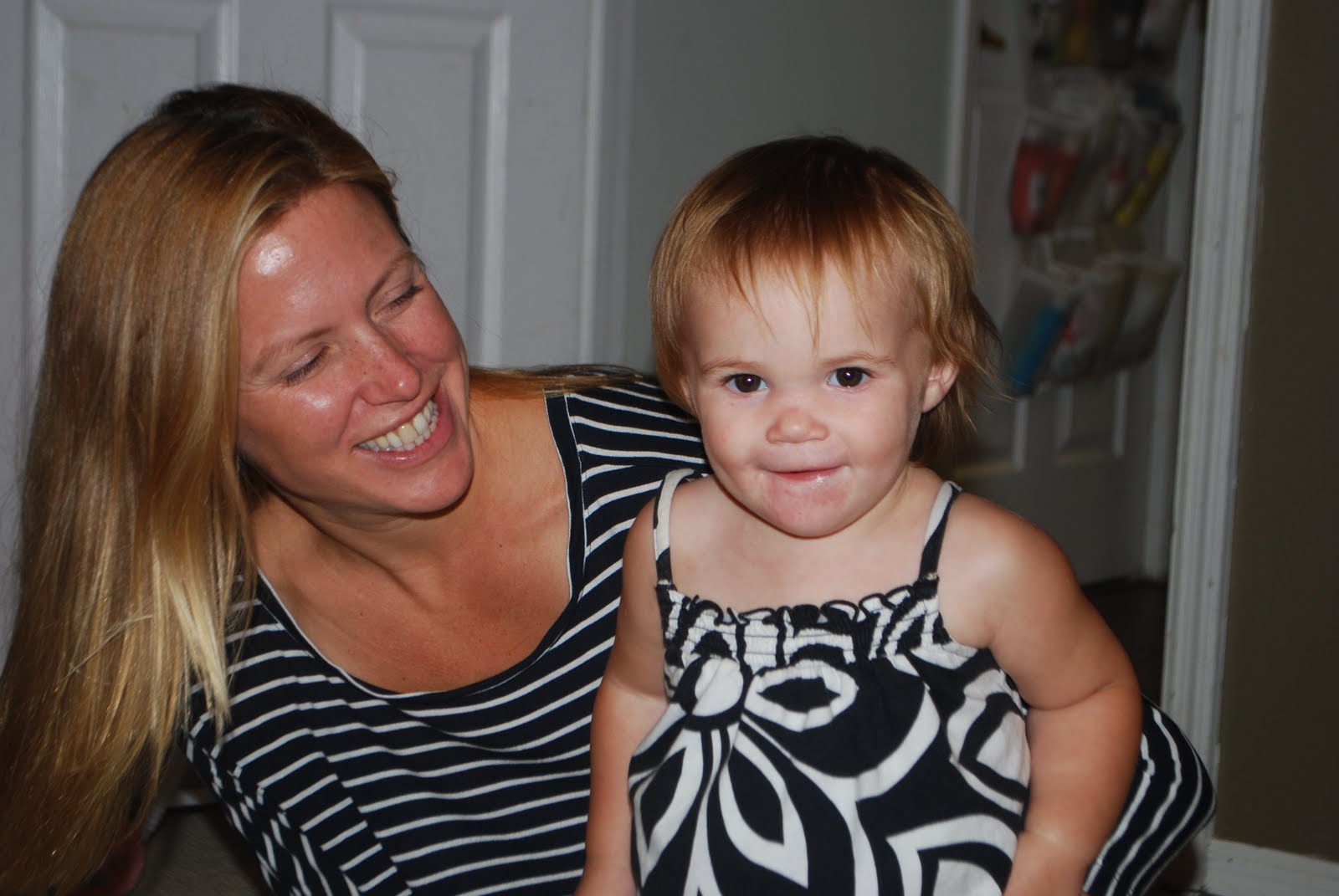 And what about Miss Brooks? Well, this girl has taken independence to a brand new level. She has mastered walking, climbing, and running and I don't think I'll be surprised if she grabs my keys, walks off to the car and decides to drive herself to college. She can hold her own with Harrison and just recently we discovered that she likes to bite back at him when he pushes her away. This also may be due to the fact that her top two teeth are coming in. She is talking, she has about 7 or 8 words, and like I said earlier, Batman is one of her favorites. Luckily, doll is another.